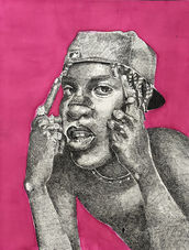 Pink Portrait, Dip Pen and Ink, 12.5"x9.75"
