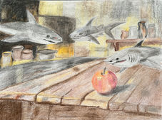 Medieval Shark, Colored Pencil, 8.5"x11"